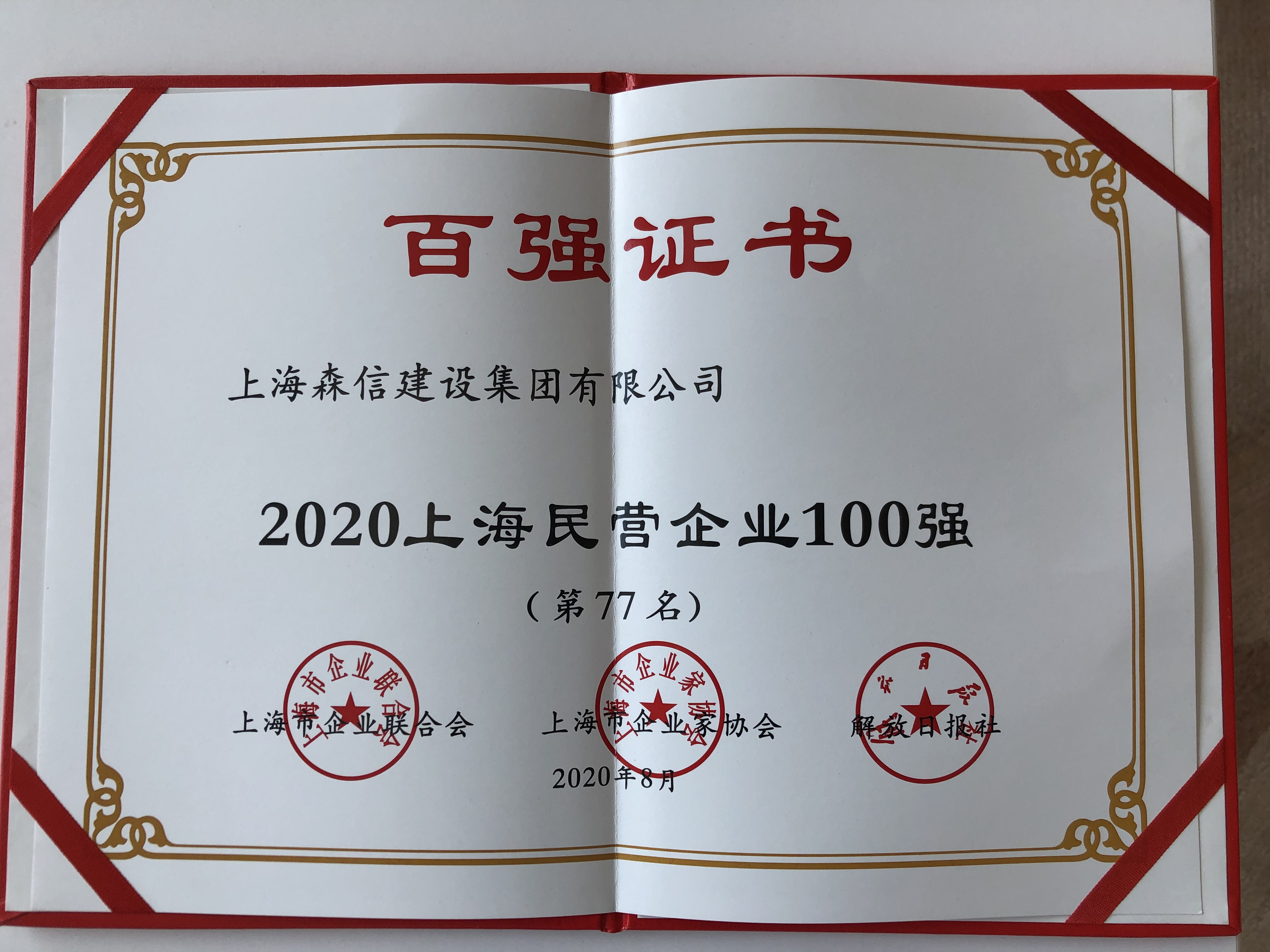 我司榮獲2020上海民營企業(yè)100強(qiáng)(77名)榮譽(yù)稱號。這已是我司連續(xù)第10年獲此殊榮。此次榮譽(yù)的的取得,是公司全體同仁在董事長的堅(jiān)強(qiáng)領(lǐng)導(dǎo)下,面對外部復(fù)雜嚴(yán)峻的形勢,積極應(yīng)對,砥礪前行,不懈奮斗的結(jié)果。